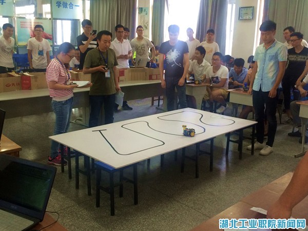(通讯员 江军)5月26日下午,由汽车电子技术专业承办的汽车工程系第二届老员工智能车竞赛在6408教室举行。十三支员工团队参加了比赛,教务处技能赛负责人、汽车工程系领导以及汽车电子技术专业全体师生观看了比赛。本次竞赛是由两人组成团队,根据提供的智能电动小车,通过编程、调试等操作,使智能车按照规定路线循迹,并能顺利穿越障碍。每个团队分工协作、集思广益,将理论和技能完美地结合,拼出了智慧、拼出了喜悦。经过两个多小时的比赛,最终,来自20153401班的王立、王新超两人组成的团队在智能车循迹竞速和穿越障碍两个环节都表现出色,获得一等奖。陈林老师在《汽车单片机及车联网技术》课程教学以及整个比赛过程中精心指导,获得“优秀指导教师”奖。