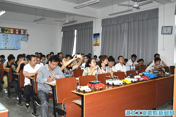 本次比赛为团体赛,3个人一个小组,比赛共分为两个环节:操控比赛和评讲ppt比赛。在弯道操控比赛环节,现场气氛热烈,场下不时响起阵阵掌声。精彩绝伦的操控比赛给人无限遐想,凝聚着设计者的智慧与创意,展示着参赛者的自信。紧张激烈的比赛,在汽车协会指导老师的致辞中拉开帷幕,尽管汽车外观大致相同,但汽车内部组件在选手的创意中变得千差万别。新颖的设计、独特的构思,让现场观众连连叫好。在操控比赛接近尾声时,特别设计了让场外观众尝试操控赛车绕赛道一圈的环节,将比赛推向了高潮。