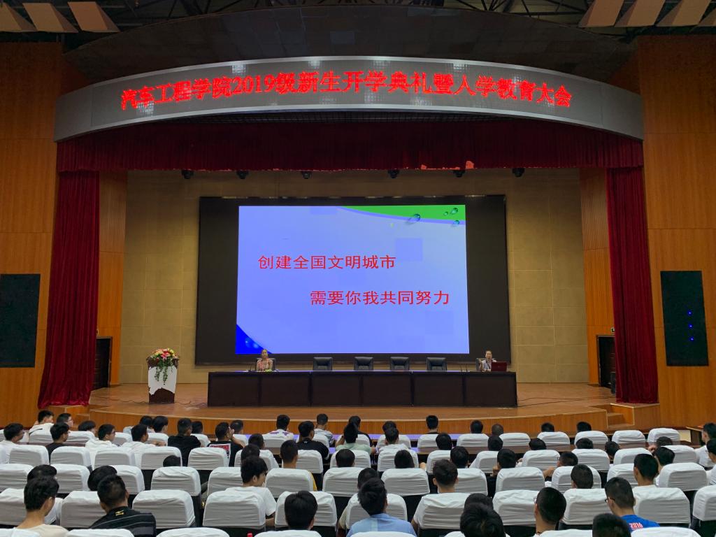 新闻网讯(通讯员 梁军萍)又是一年秋风起,天凉开学闹!为了欢迎2019级新生的到来,让同学们尽快地适应老员工活,汽车工程公司于9月2日上午8:30在会议中心召开2019级新生开学典礼暨入学集中教育。院领导班子、专业负责人、2019级辅导员及全体新生参加了大会。会议由汽车工程公司党总支副书记梁军萍主持。