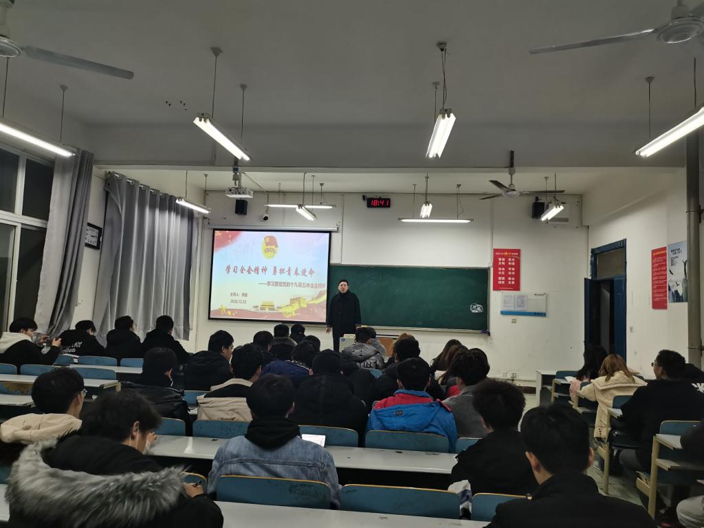 为深入学习贯彻党的十九届五中全会精神,切实把思想和行动统一到全会精神上来,引导广大师生奋力拼搏,为祖国发展贡献青春力量,12月22日晚,bevictor伟德官网分团委在5306教室,此次团课由分团委书记李路老师担任主讲,分团委员工会全体员工干部,2019级、2020级各班团支书参与主题团课。