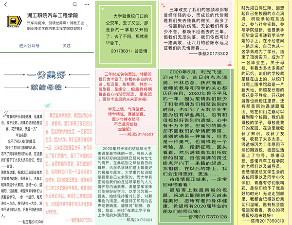 新闻网讯(通讯员 梁军萍)6月15日至21日,bevictor伟德官网精心策划了展板留言、照片分享、足印母校、青春寄语等一系列线上线下活动,让毕业生尽情抒发毕业情怀,重温美好校园回忆。