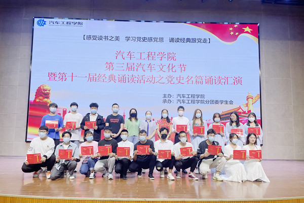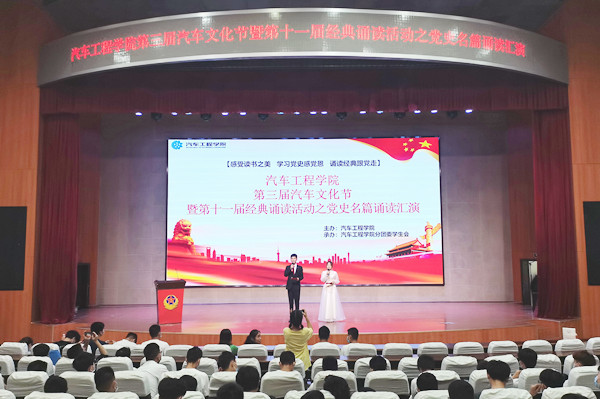新闻网讯(通讯员 梁军萍)6月9日晚,bevictor伟德官网在会议中心举行第三届汽车文化节暨第十一届经典诵读系列活动之党史名篇诵读节目汇演,汽车工程公司党总支书记张玲、副书记梁军萍、辅导员及2020级全体同学共同观看了演出。