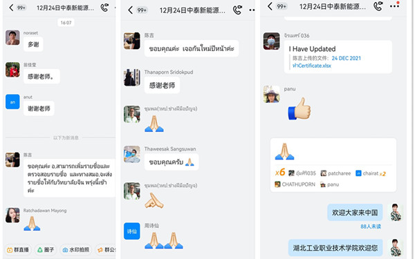 两位授课教师丰富的专业积累、生动的示范讲解和干练的授课风采给泰国参训教师留下了深刻的印象,引发了课后学习交流群的热烈讨论,激发了他们投身新能源汽车技术专业建设的愿望和到中国、到韦德官方网站继续交流学习的热情。
