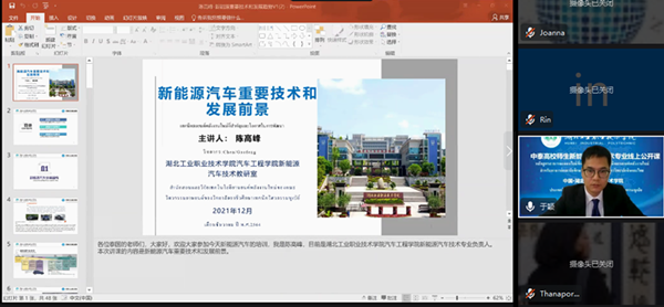 新闻网讯(文/于颖 图/熊超)12月24日,公司与泰国职业教育委员会办公室、北京瑞泮国际教育科技有限公司联合举办“韦德官方网站新能源汽车技术专业高校教师(泰国专场)培训班”。开幕式由校国际交流与合作中心主任于颖主持,副董事长严永金和泰国邦巴空工业公司董事长披农·威瑞雅颇瑞克博先生分别代表中泰双方职业院校致辞,bevictor伟德官网经理张健、教务处副处长赵艳杰、新能源汽车技术专业负责人陈高峰出席开幕式。
