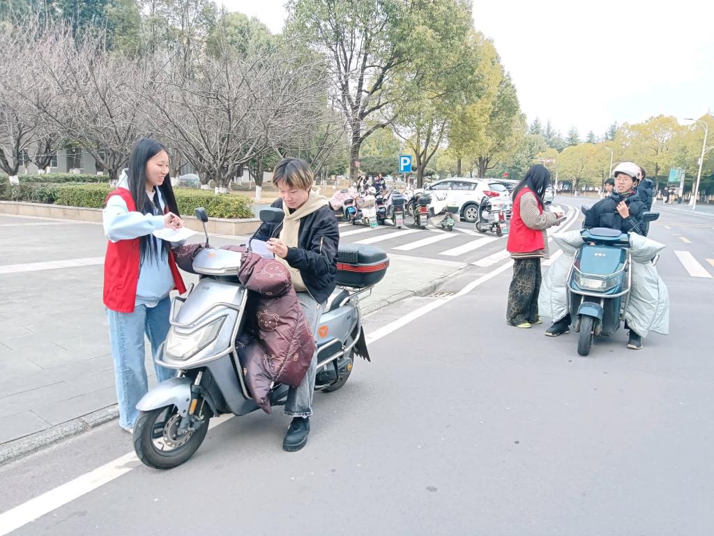 “同学,请佩戴头盔!”在繁忙的校园主干道上,143名“文明骑士”开展了为期8天的安全督导。他们设立若干个劝导岗,规范电动车停放200余辆次,现场教学头盔正确佩戴方法,劝阻逆行、超速等行为。同步实施的“无烟校园”行动覆盖了5号教学楼和实训车间,30名志愿者通过设置警示牌、对在公共走廊吸烟同学耐心劝导,提高了大家的控烟意识。
