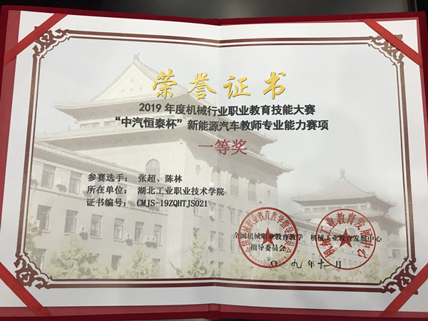 新闻网讯(通讯员陈林)11月16日至17日,2019年度机械行业职业教育技能大赛——“中汽恒泰杯”新能源汽车专业教师能力大赛顺利落下帷幕,公司张超、陈林老师喜获一等奖。