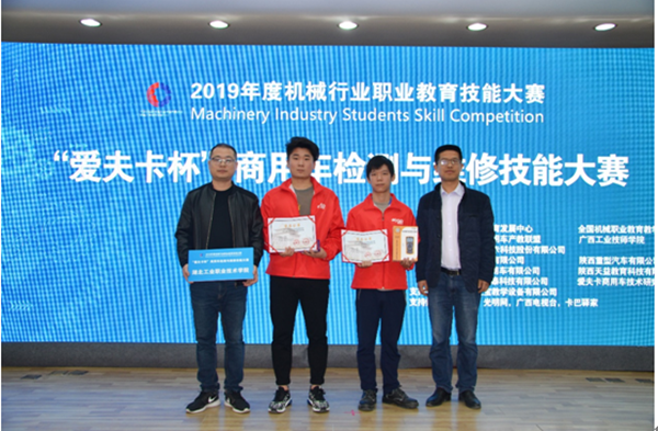 新闻网讯(通讯员 秦挽星)12月1日,2019年度机械行业职业教育技能大赛-“爱夫卡杯”商用车检测与维修技能大赛在广西工业技师公司落下帷幕,公司2017级汽车检测与维修技术专业参赛员工胡洋、李生龙分别荣获高职组二、三等奖。